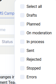 Scheduled for + date/time. - On moderation - email and push moderation is currently being phased out, so this filter is becoming partially irrelevant, but it remains applicable for SMS mailings because SMS is the most expensive communication channel.