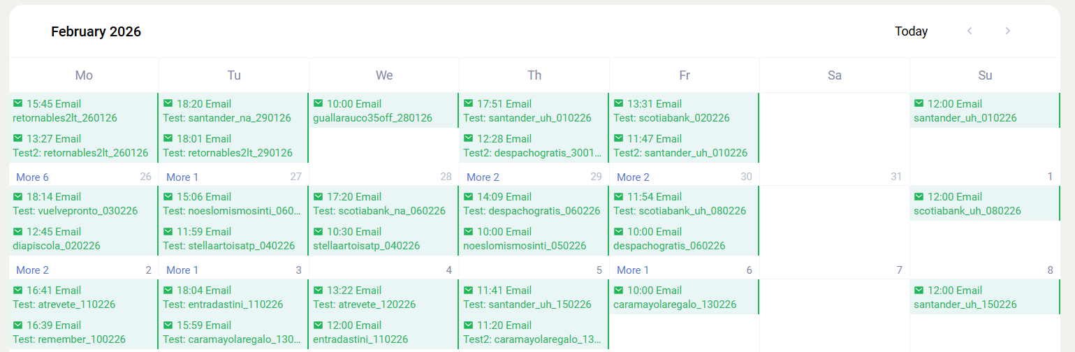 Calendar - switches the display to calendar mode so you can see when mailings were scheduled and sent.