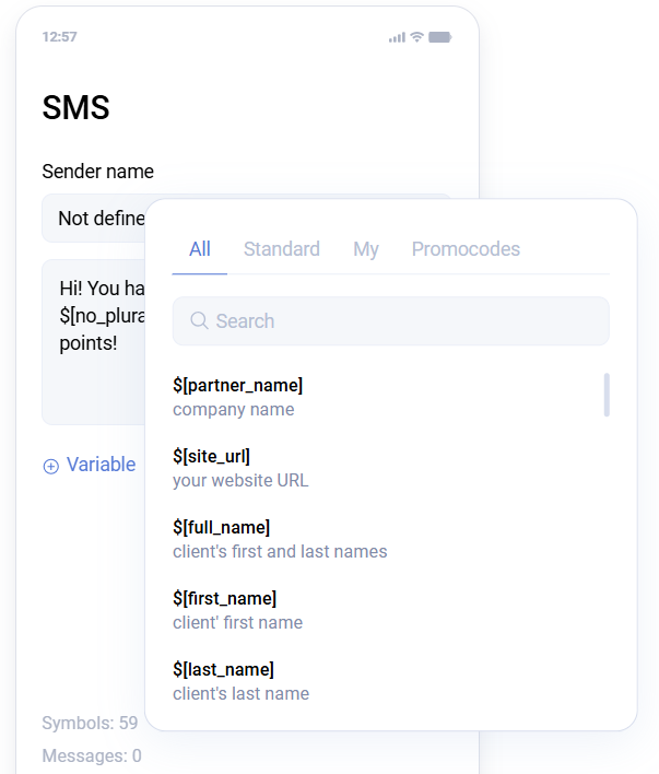 - Variables, the same type used in email, SMS, Viber, and WhatsApp
