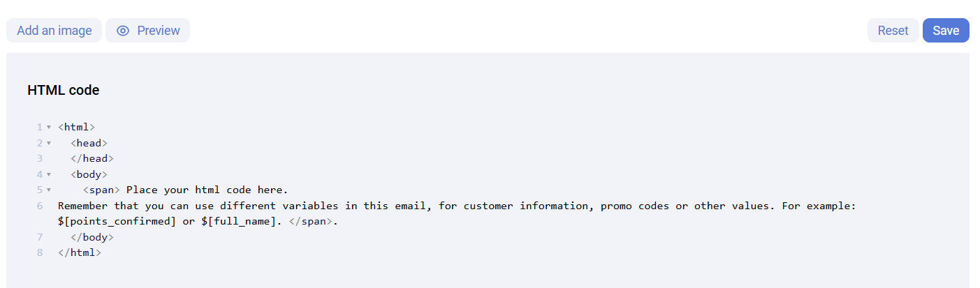 - HTML Editor - a code-based template editor. It is the most flexible option but requires HTML and CSS knowledge.