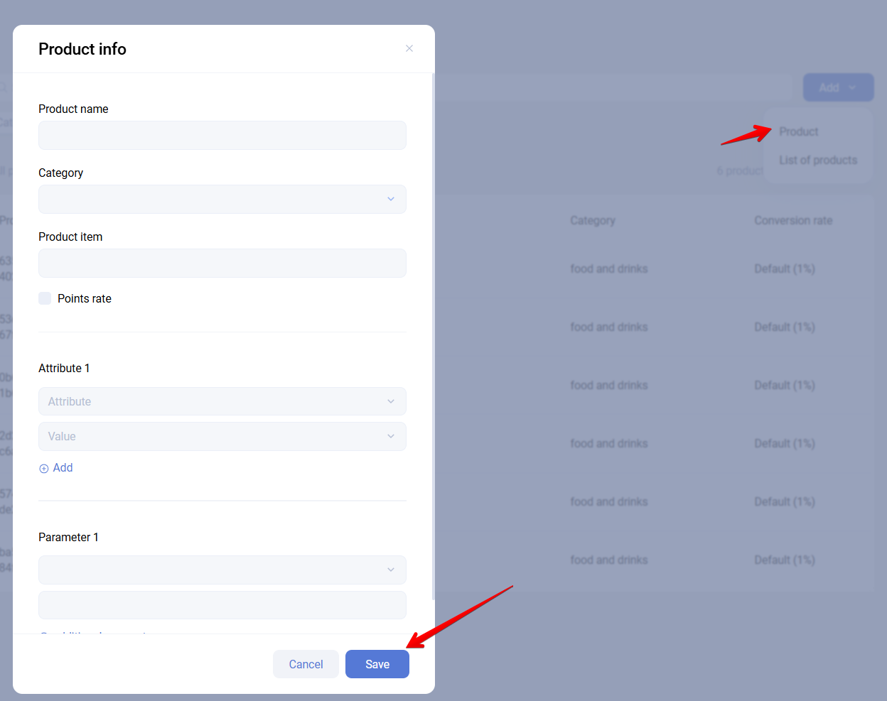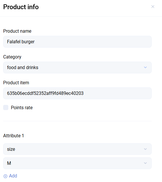 Clicking Add - Product or any existing product opens the product card, where you can view and edit: