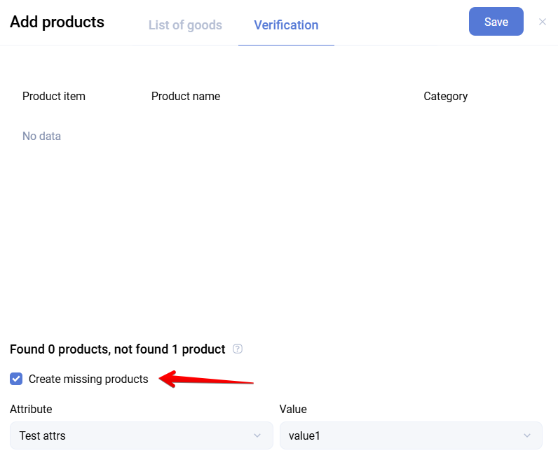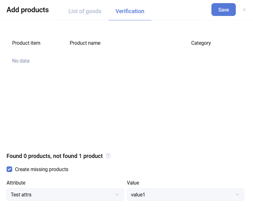 The interface displays information about products that already exist in the system with the specified article numbers. This allows the interface to be used not only for uploads, but also for adding attributes to existing products.