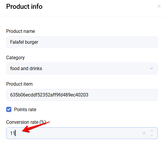 The conversion coefficient determines what percentage of the product price is returned to the client as bonus points, that is, cashback.
