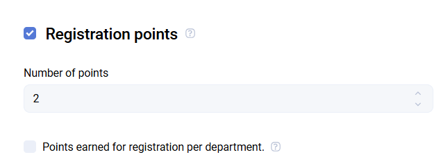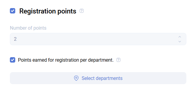 Here you can specify how many points a client receives when joining the loyalty program. If you enable Different number of points for registration for each department, a separate configuration block appears for each department.