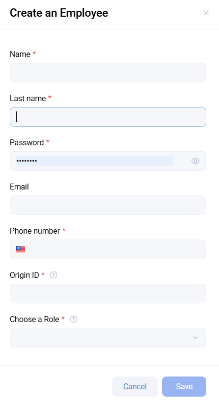 - Add employee - a direct creation form. In the current version, invitation links are recommended instead