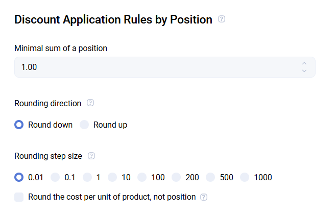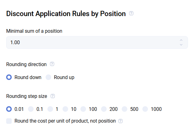 - Minimum position amount - the minimum product cost required to apply a discount.