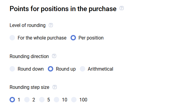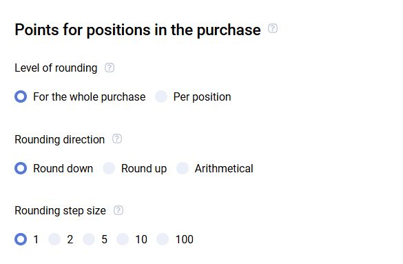- Rounding step: accrued points become multiples of the selected value. For example, with a step of