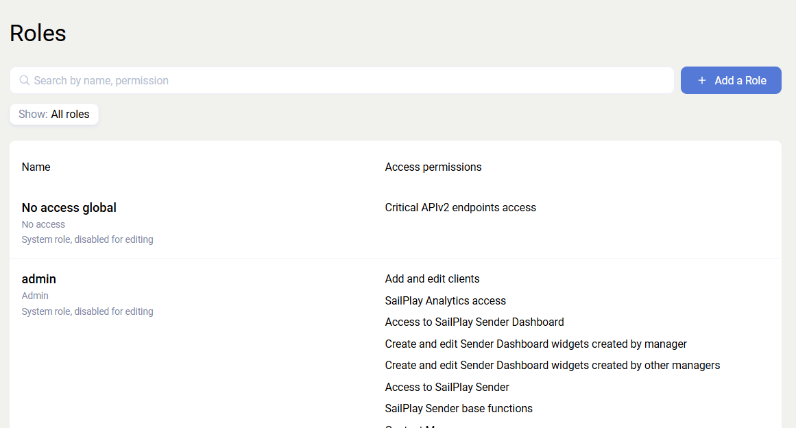 - Custom roles - roles created by the partner. They can be edited through the three-dot action menu