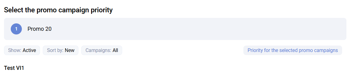 The Priority for selected promotions option allows you to configure the priority of the edited promotion against all other promotions at once.