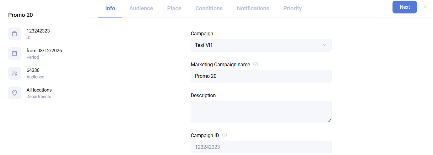 - Campaign - the campaign the promotion belongs to