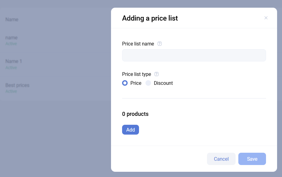 Price lists support two modes: